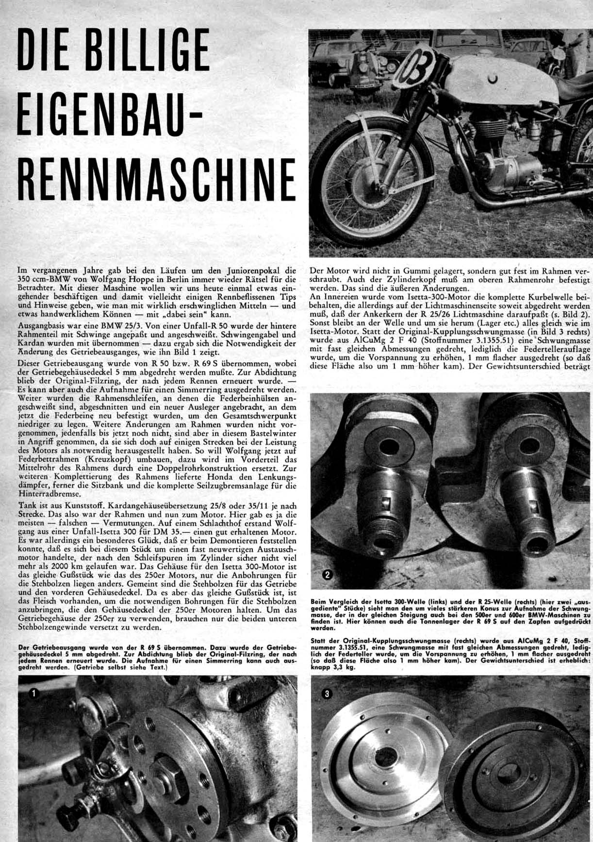 Diese Vielseitigkeit machte den BMW-Einzylinder in den 1960er Jahren besonders attraktiv für den preisgünstigen Rennsport – wie ein Bericht über Wolfgang Hoppe zeigt. Hoppe gelang es, aus vorhandenen Werkstattteilen eine kostengünstige, aber konkurrenzfähige Rennmaschine aufzubauen. Seine Eigenbau-Rennmaschine zeigte eindrucksvoll, was mit handwerklichem Geschick und guter Planung möglich war.
