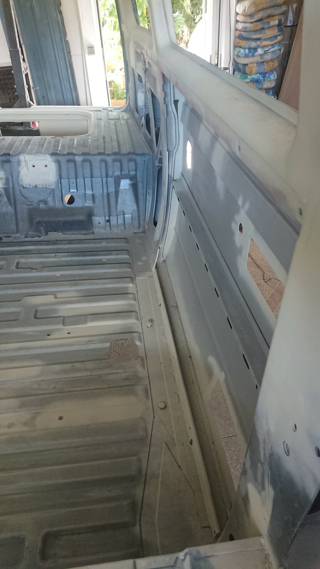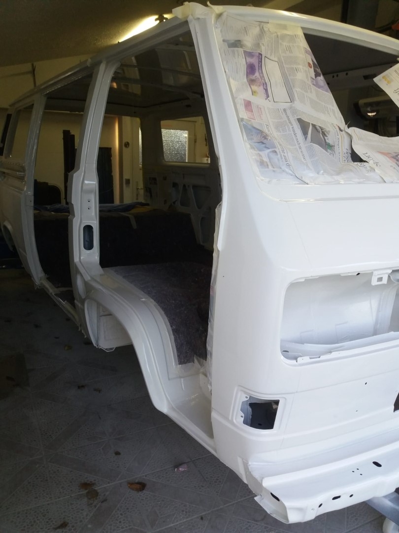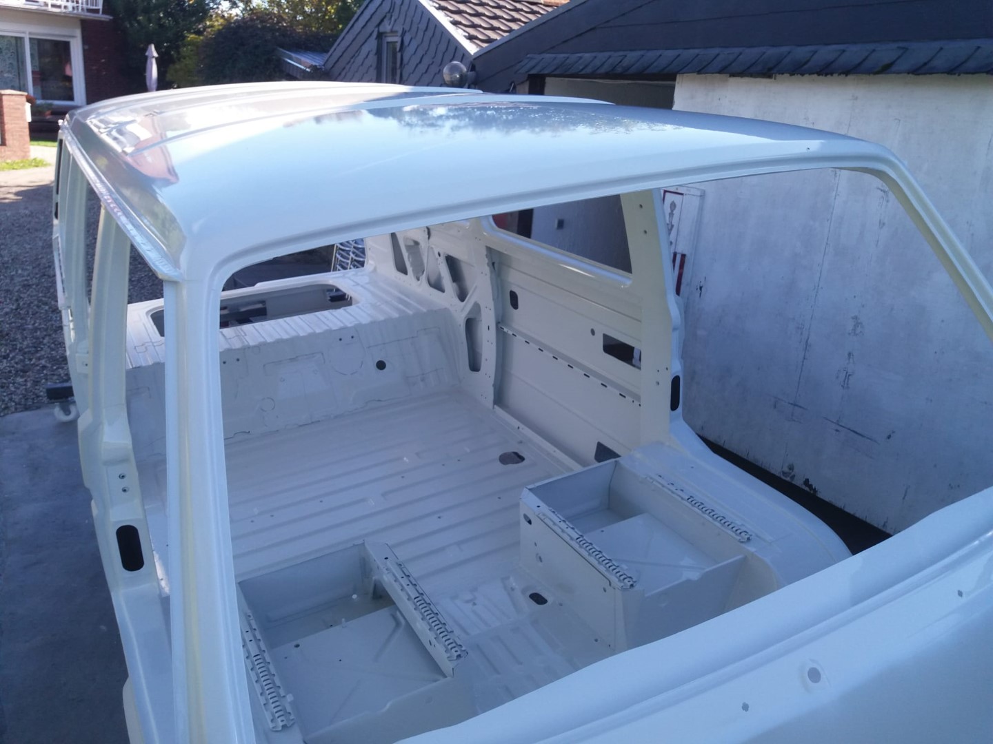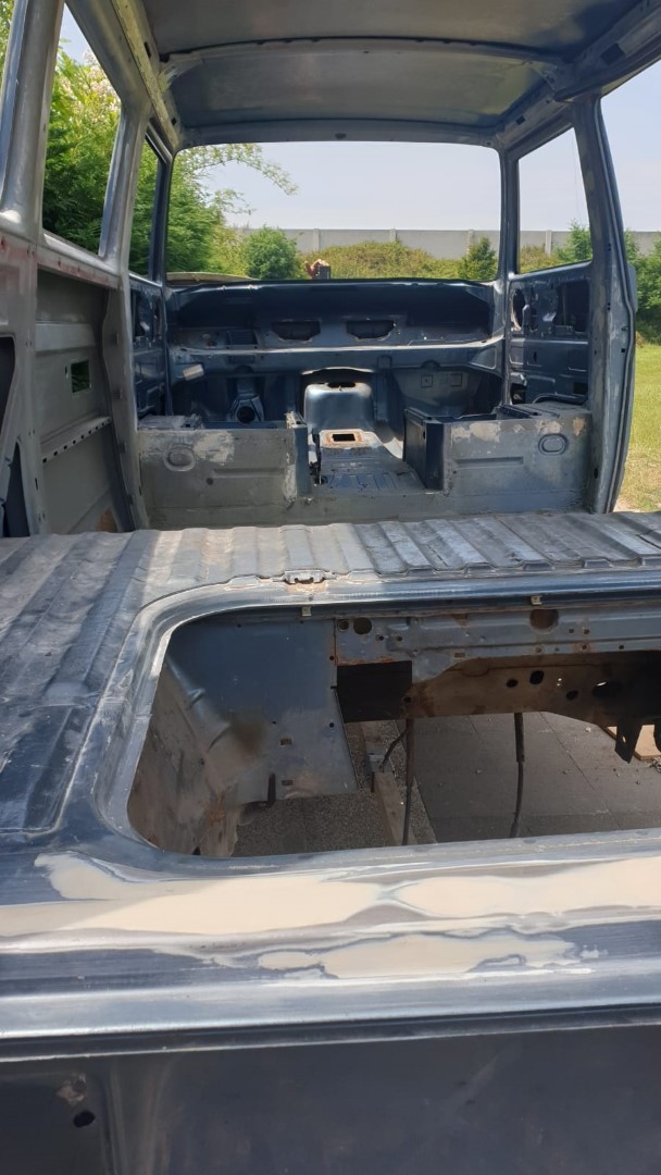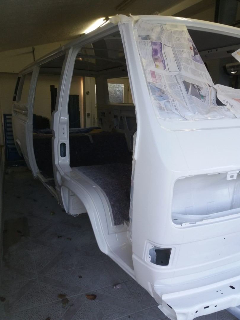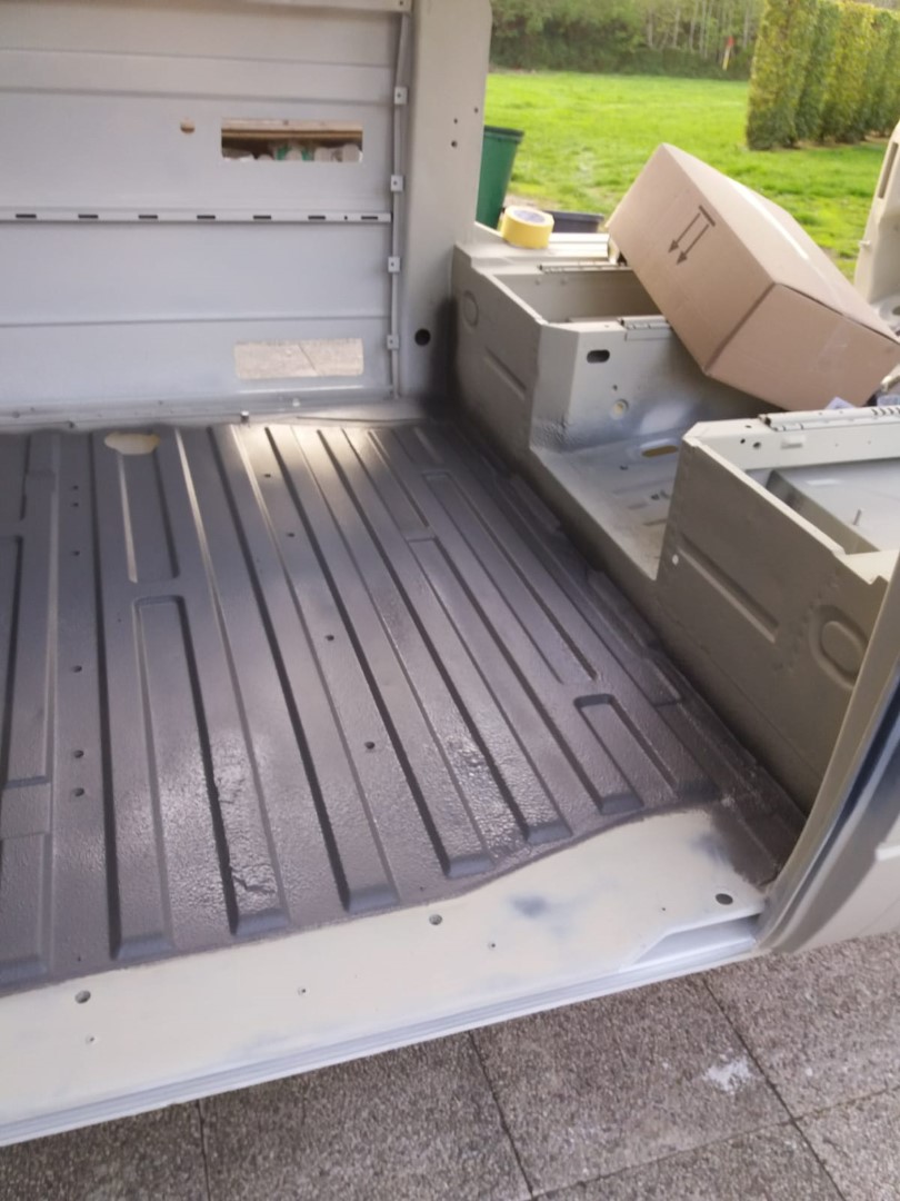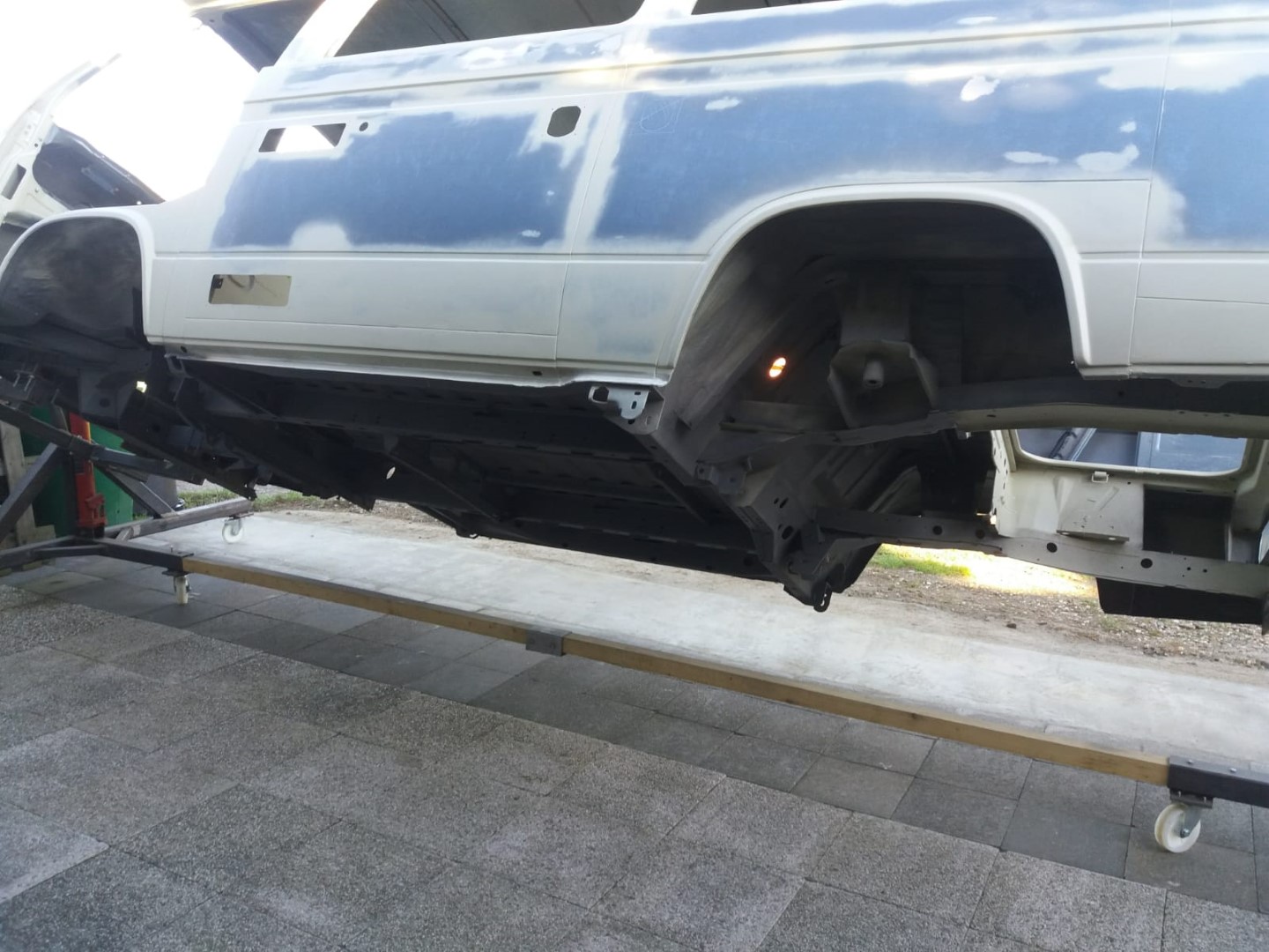 Nach dem unsere Karosse vollständig ausgezogen wurde, soll der Unterboden mit Trockeneis gereinigt werden und der Rost vollkommen verschwinden. Anschließend beginnt der neue Lackaufbau. Mit Blick auf unser Budget wird es wohl keine perfekte Lackierung und wir entscheiden uns soviel wie möglich selbst machen.