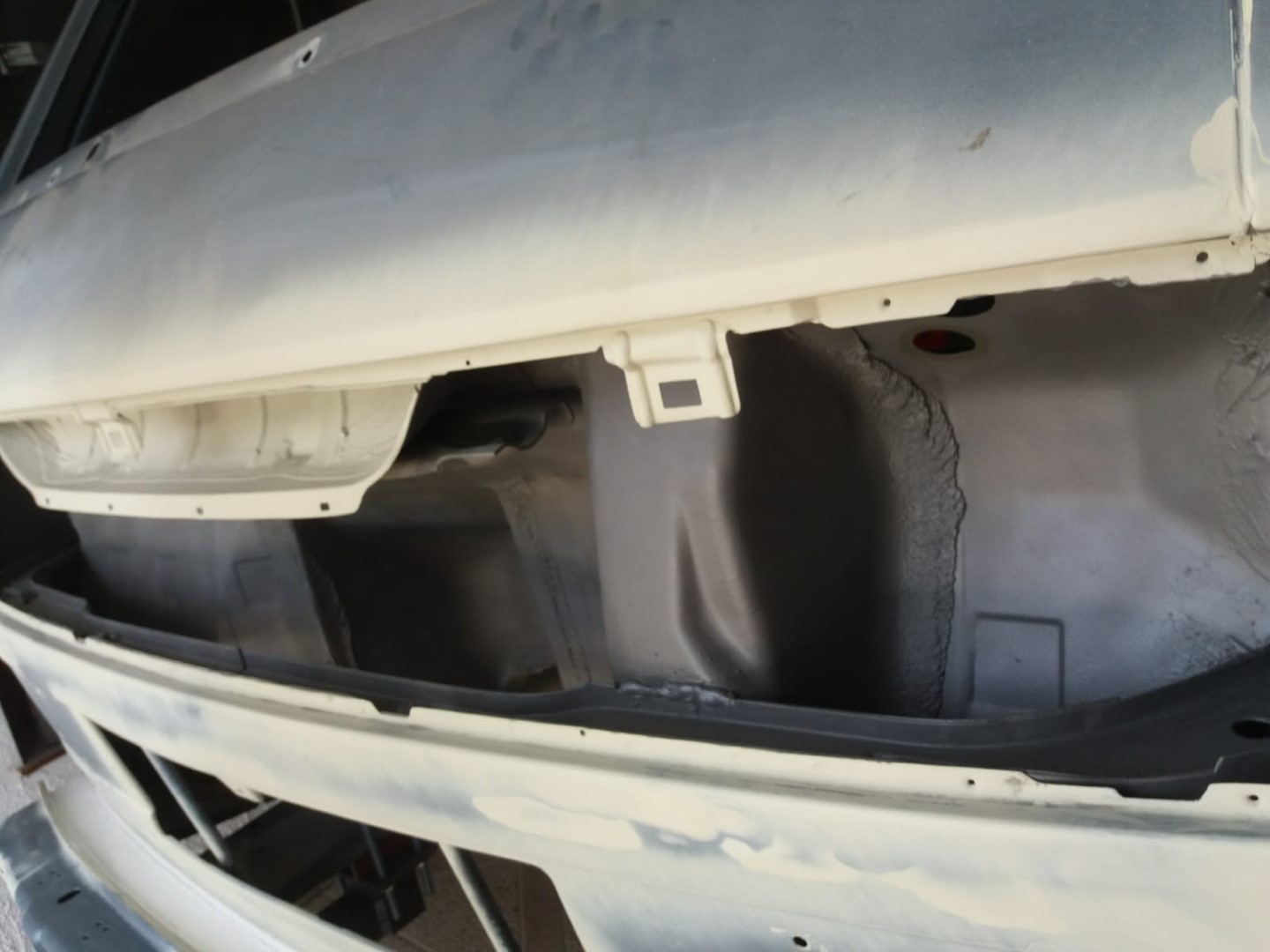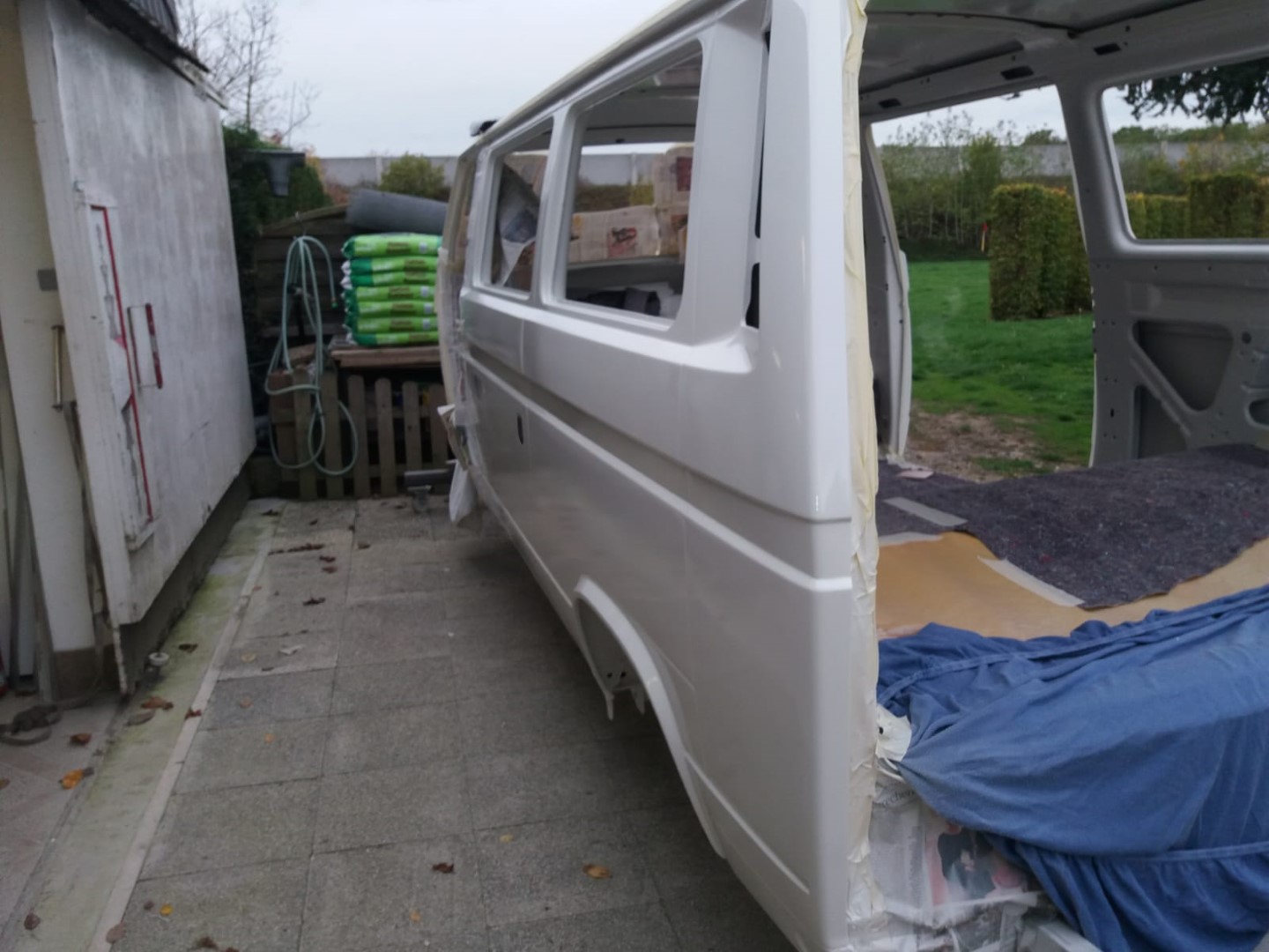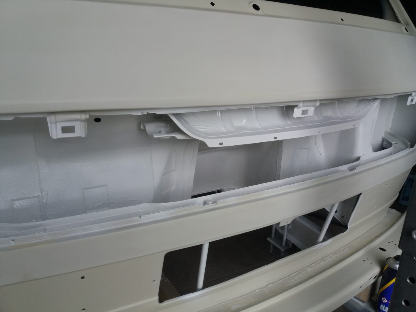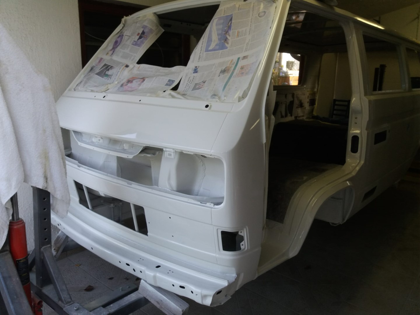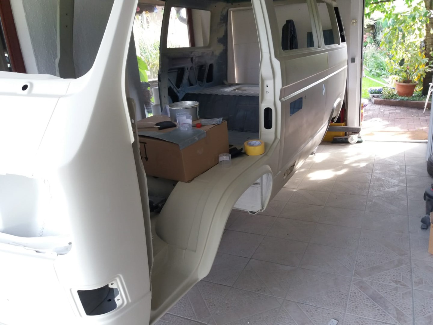Nach dem unsere Karosse vollständig ausgezogen wurde, soll der Unterboden mit Trockeneis gereinigt werden und der Rost vollkommen verschwinden. Anschließend beginnt der neue Lackaufbau. Mit Blick auf unser Budget wird es wohl keine perfekte Lackierung und wir entscheiden uns soviel wie möglich selbst machen.