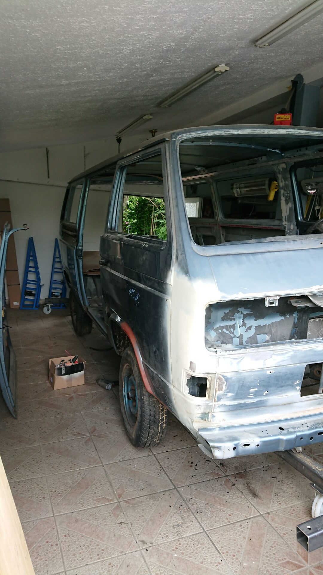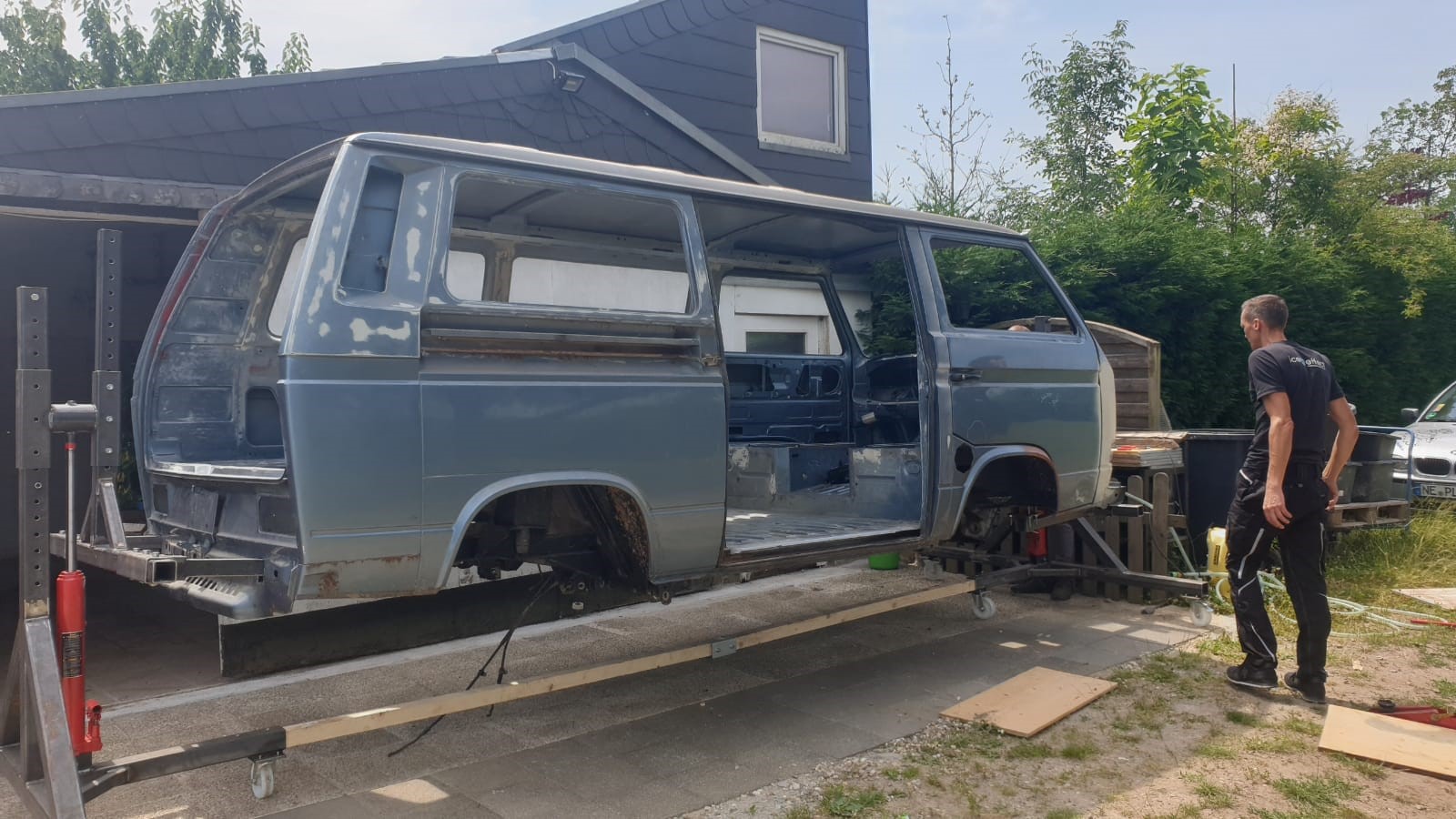 Nachdem wir angefangen haben unseren „Totalschaden“ zu Schlachten und wir uns dem ganzen Ausmaß erstmal bewusst werden sind wir froh, dass den Vorbesitzern nicht mehr passiert ist. Das Fahrzeug ist mehr als nur Krumm bis zur Schiebetür.